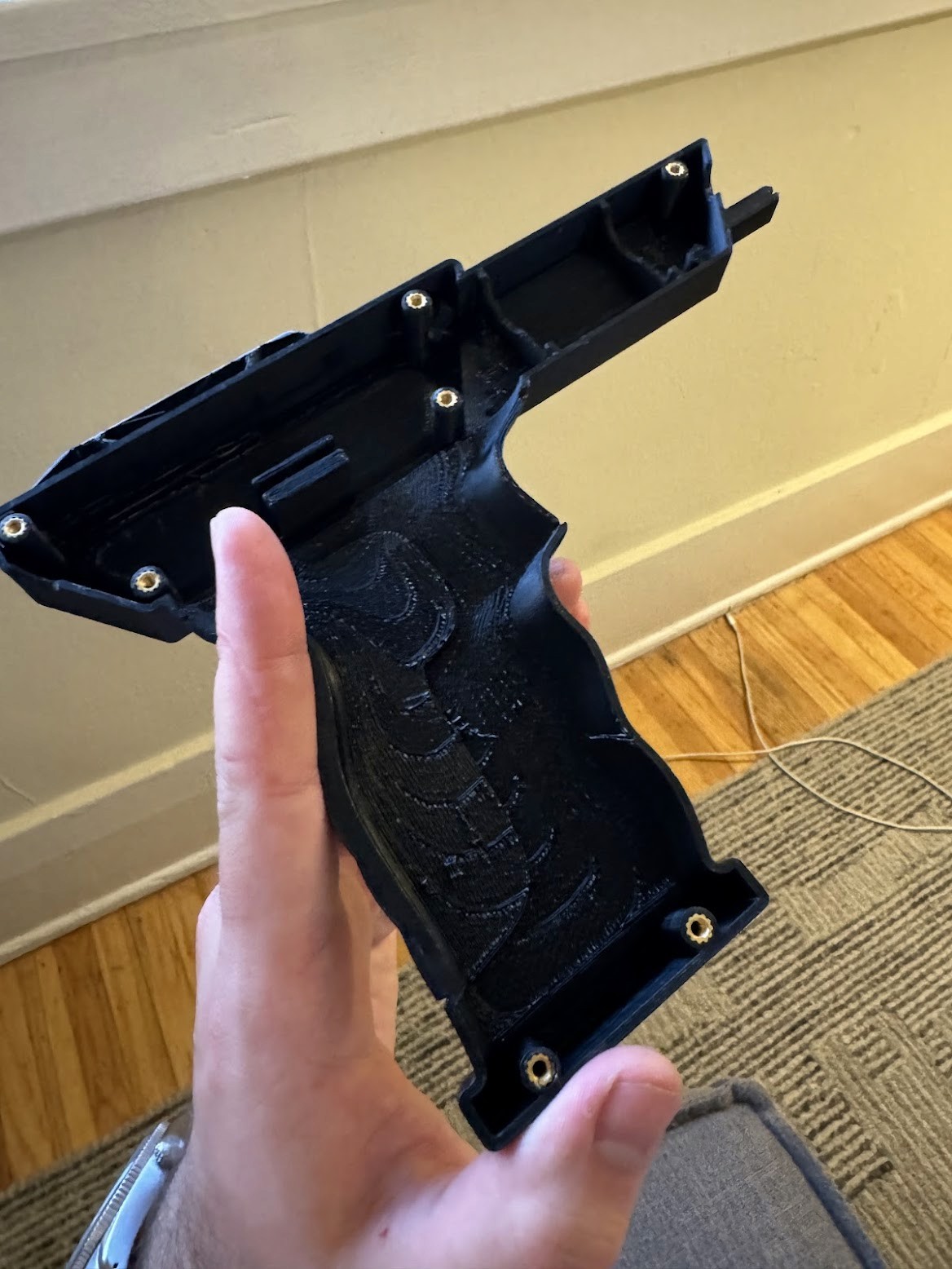 To validate the form and assembly, I produced a full-scale 3D-printed mock-up. The prototype includes heat-set threaded inserts and standard hardware, allowing it to be assembled and disassembled while maintaining structural integrity.