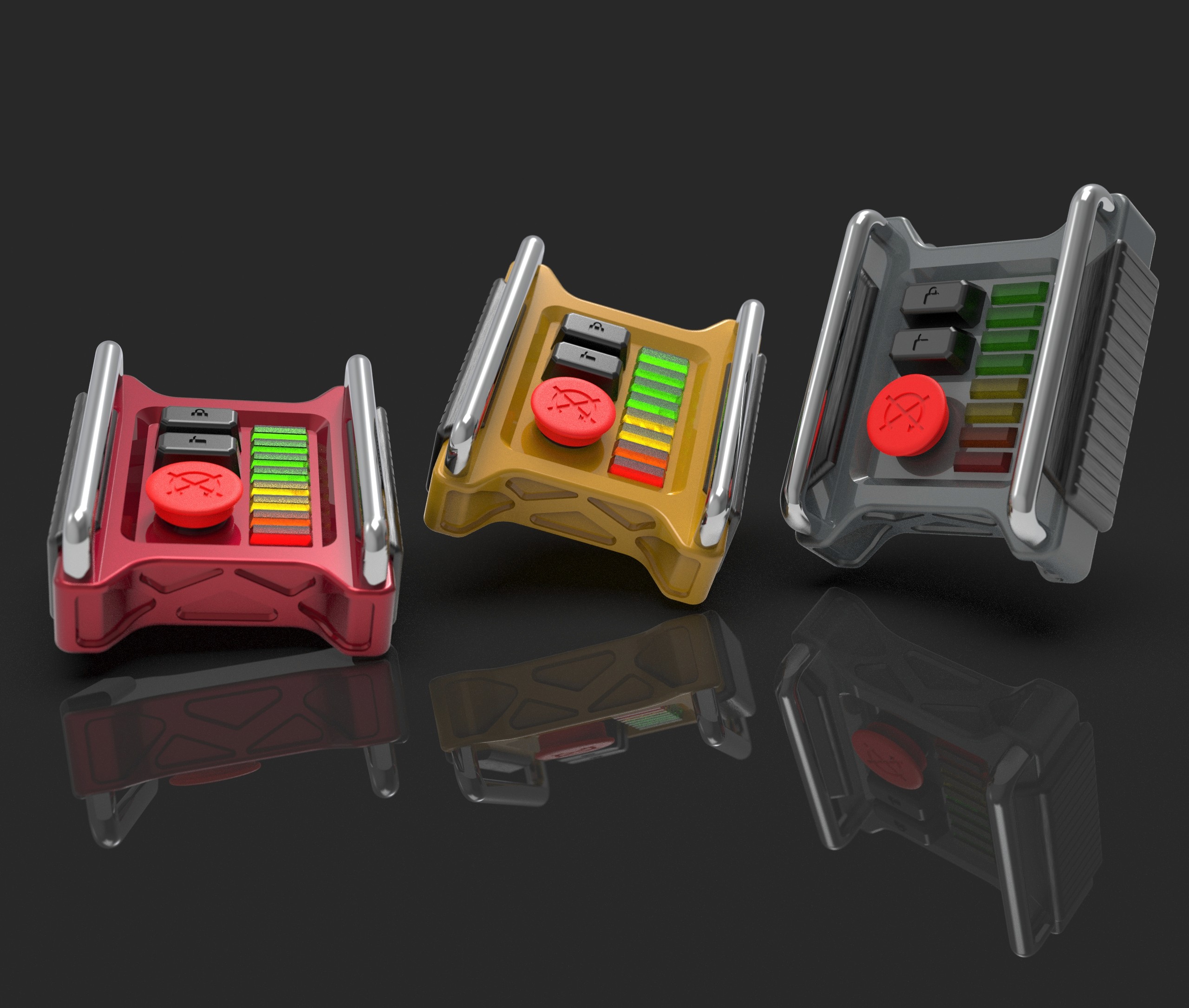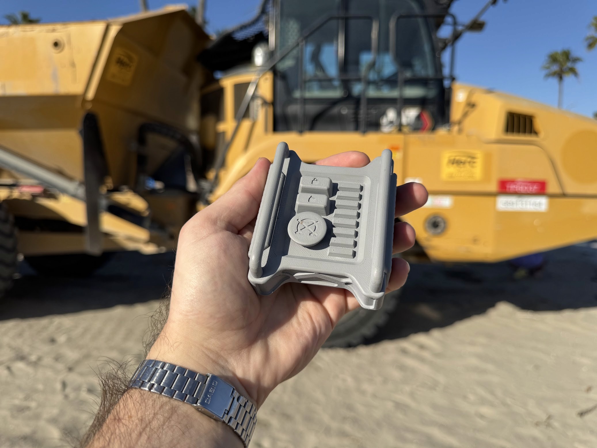 Beyond aesthetics, the design introduces practical features tailored to equipment operators. Integrated rails protect the buttons from accidental presses, improving reliability in demanding environments. The key fob also includes an emergency remote kill switch for safety, as well as a fuel level indicator that allows operators to quickly assess whether a machine will require refueling—helping coordinate with diesel service trucks before the start of a workday.