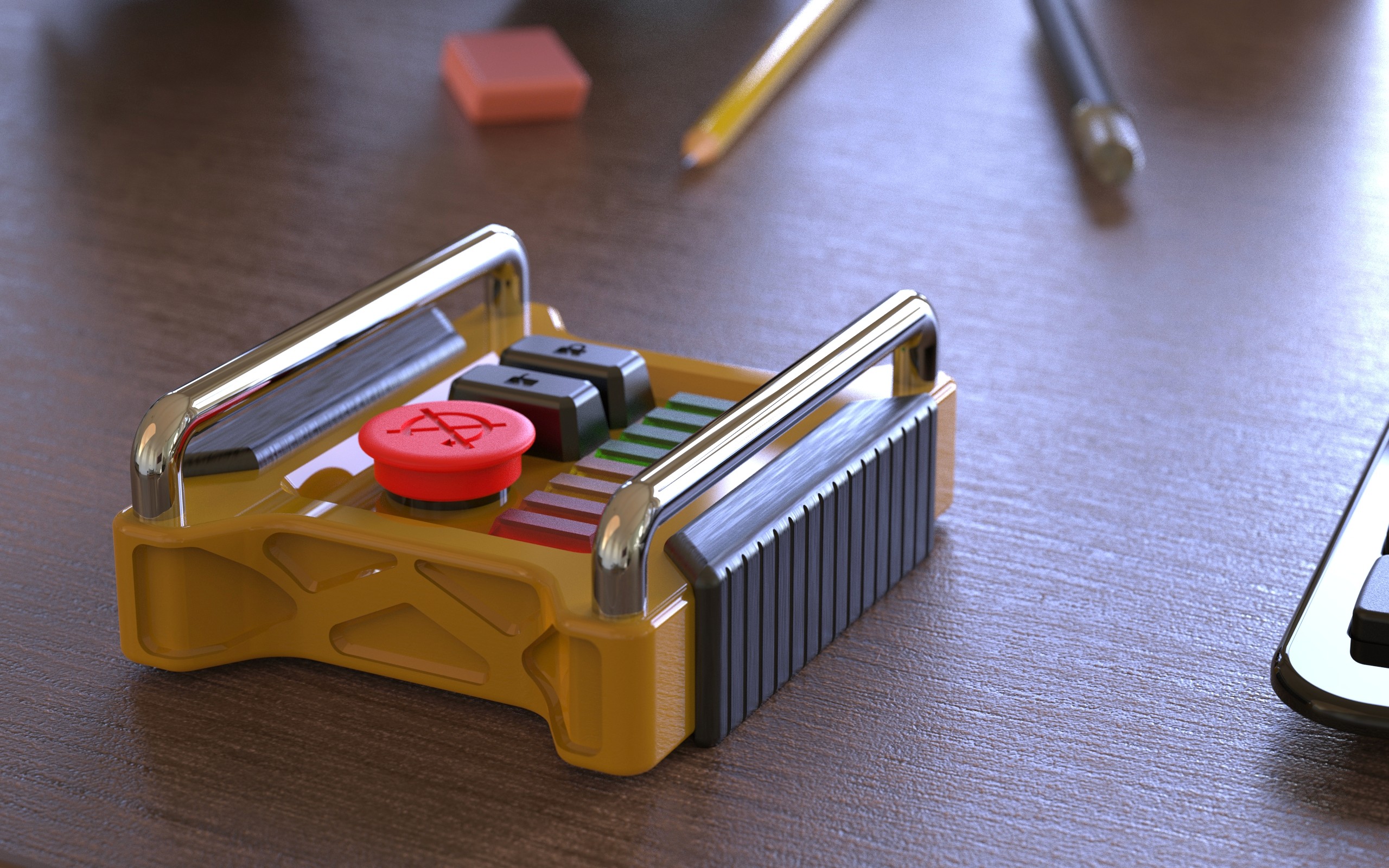 Drawing inspiration from Caterpillar Inc. and its line of excavators and heavy machinery, I developed a key fob that reflects the rugged, functional language of industrial equipment. The form and detailing reference the structure and durability associated with heavy-duty machines.